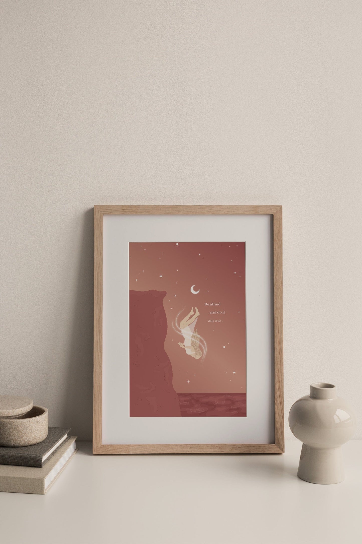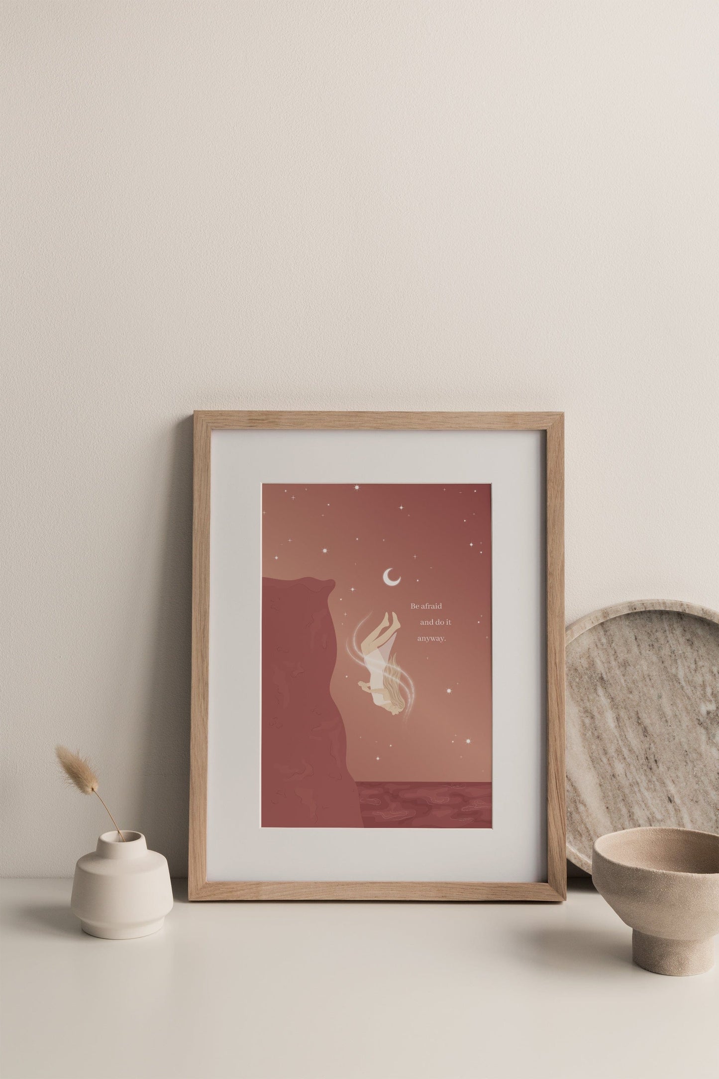 This spiritual and celestial illustration of a woman and the quote "Be afraid and do it anyway" helps you embrace the divine feeling of growth and manifestation