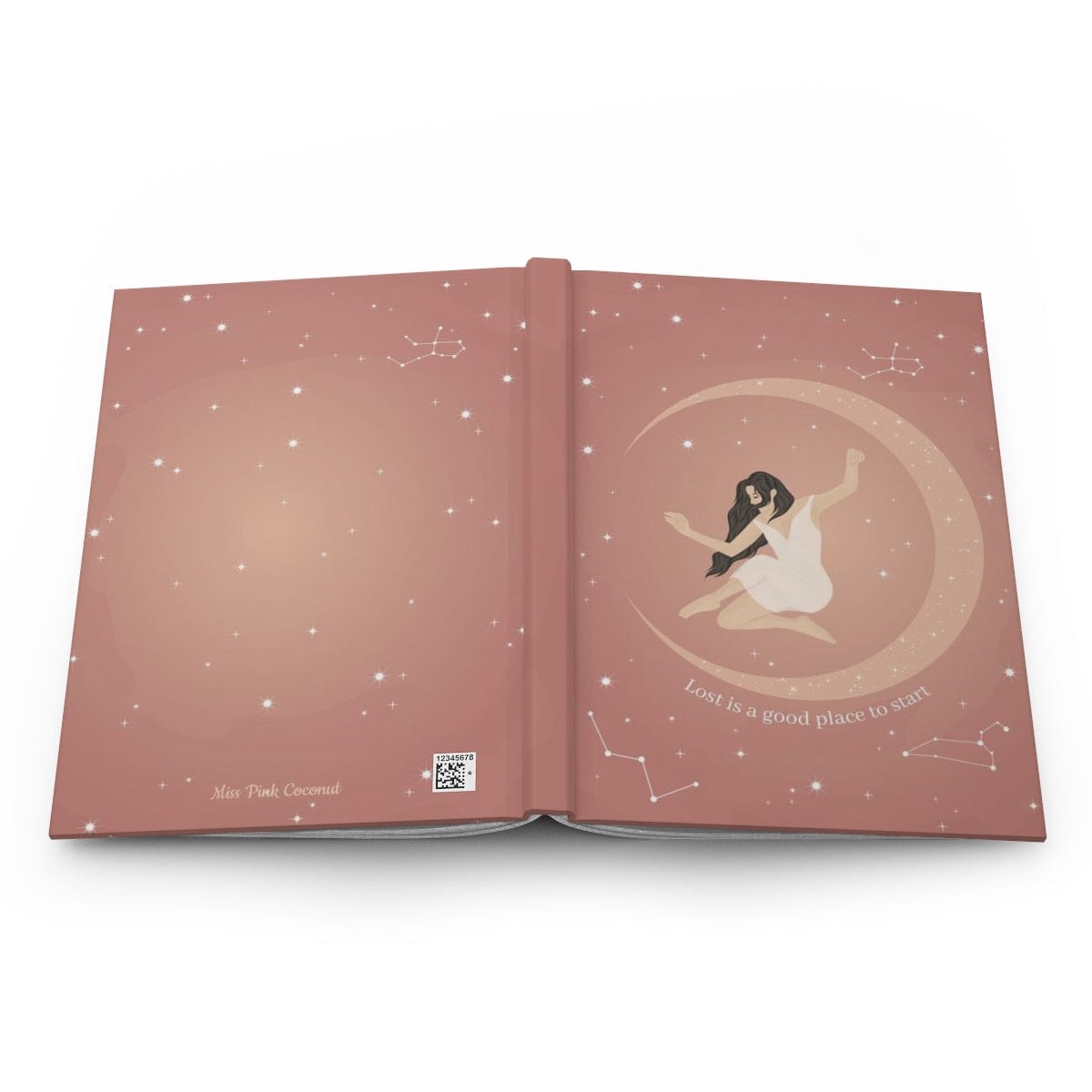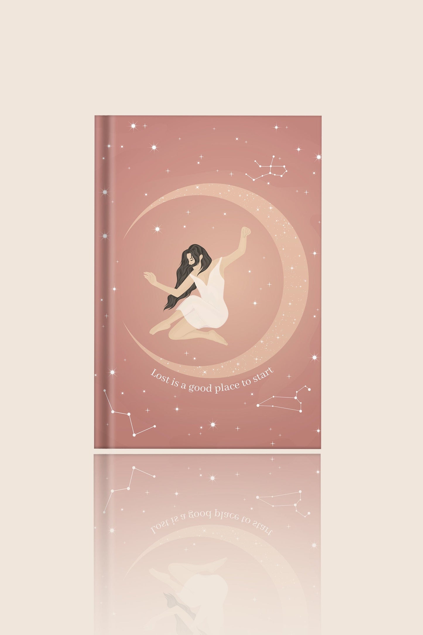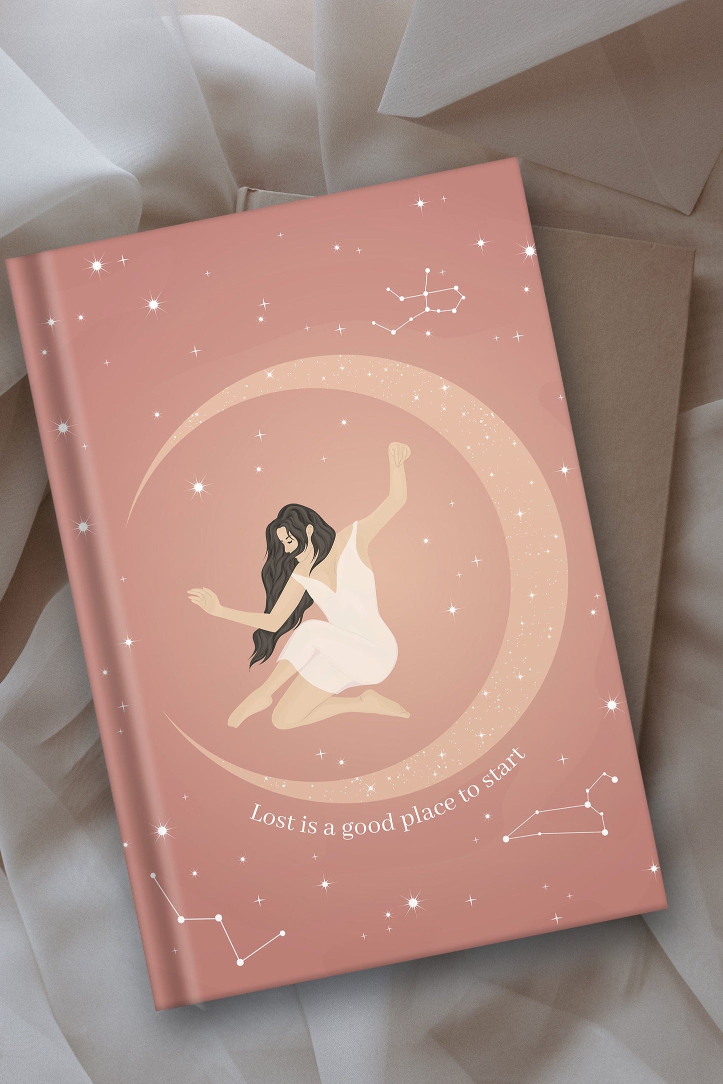 The magical cover, entirely designed by me, shows a woman and the quote "Lost is a good place to start".