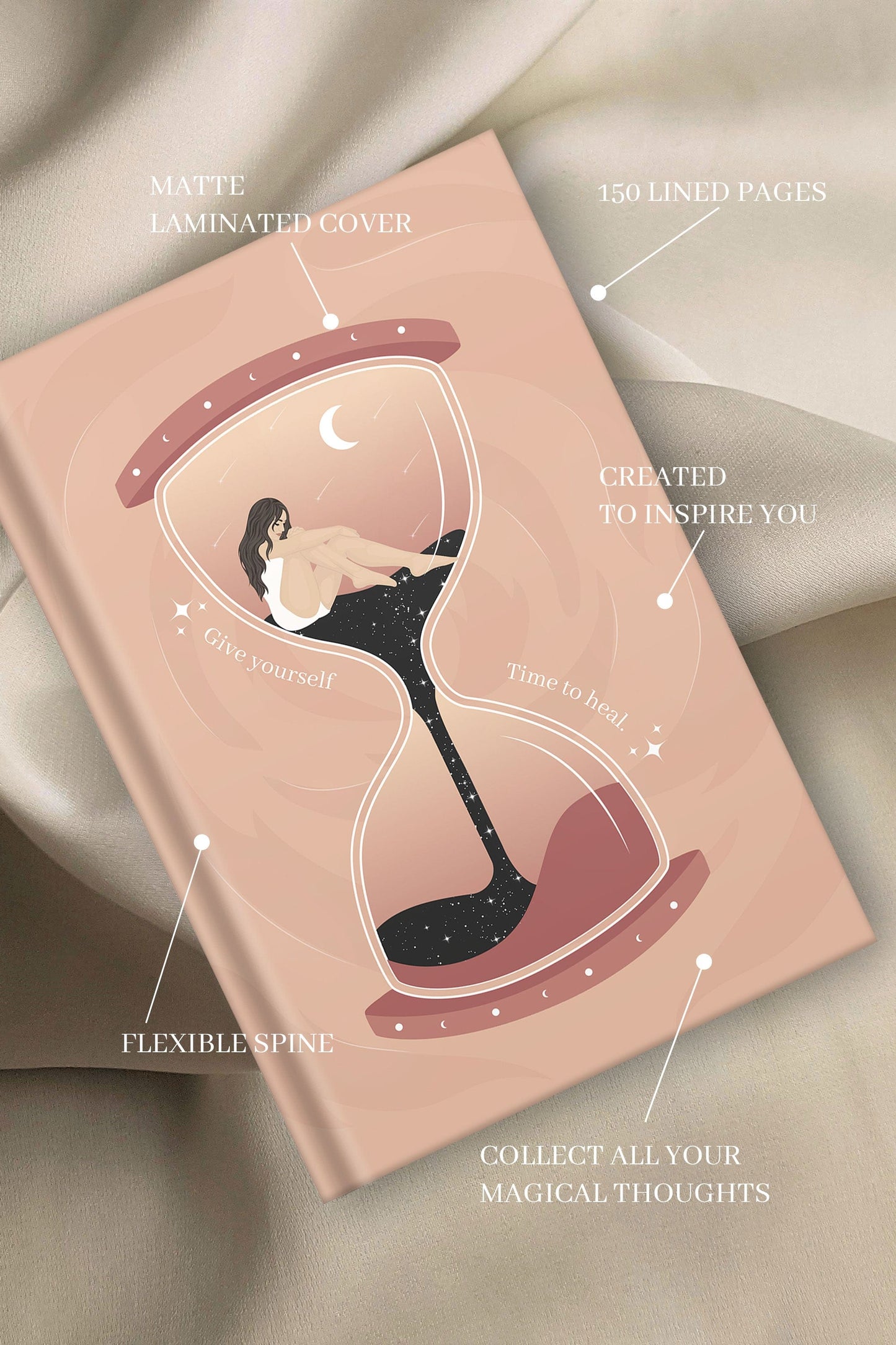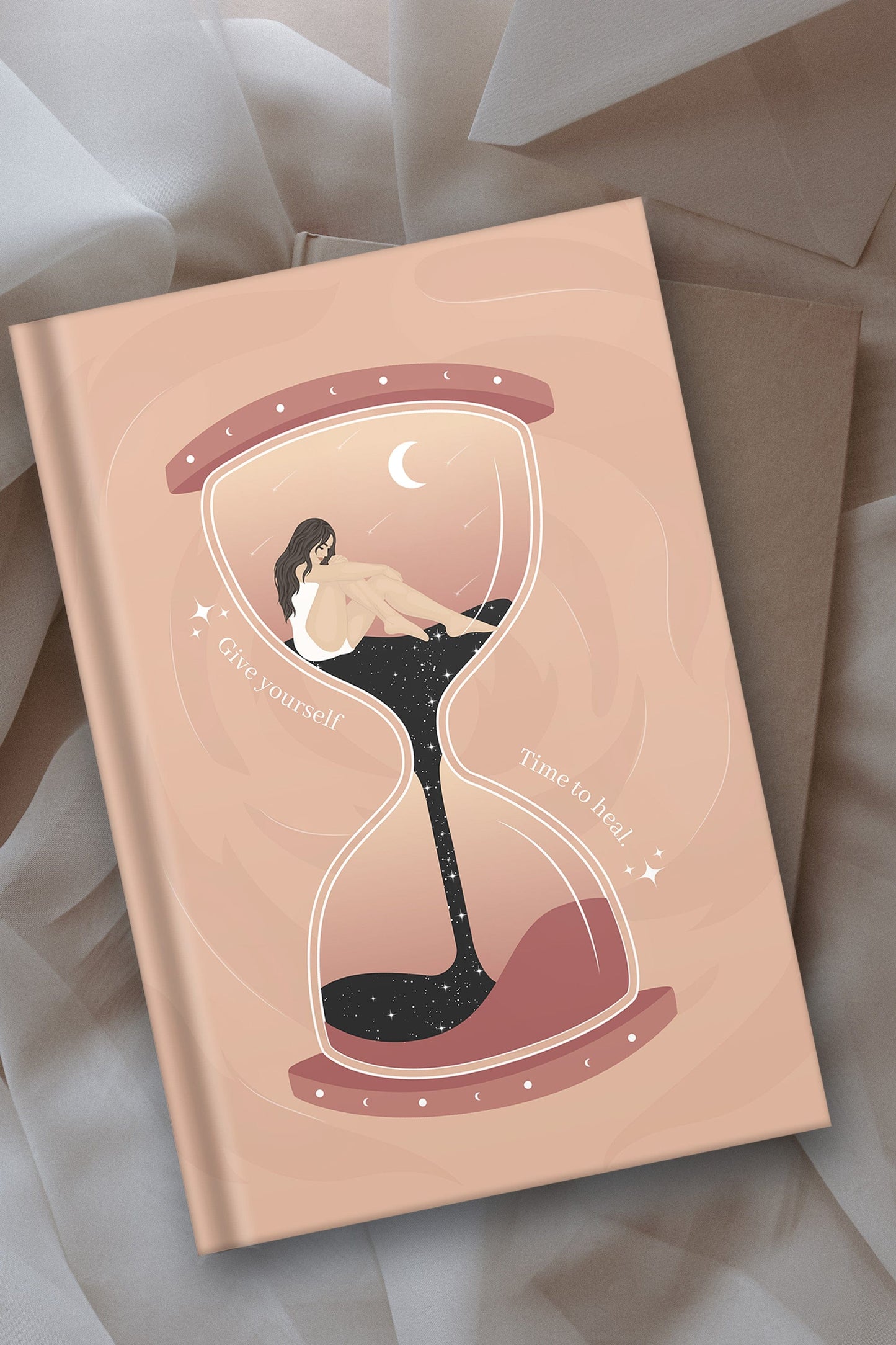 The magical cover, entirely designed by me, shows a woman and the quote "Give Yourself Time To Heal".